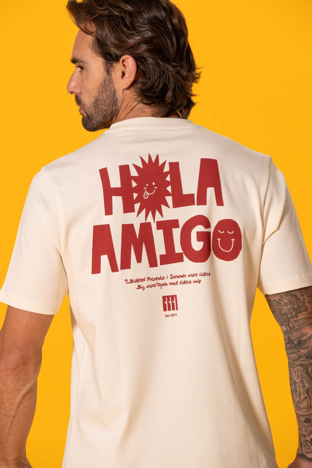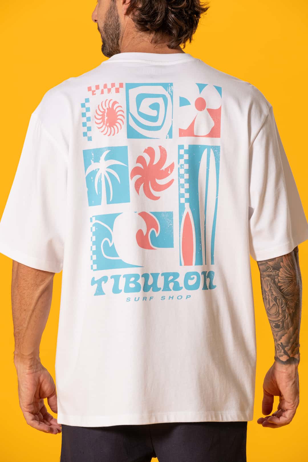 Göğsü Sörf Baskılı Ekru Regular Tişört