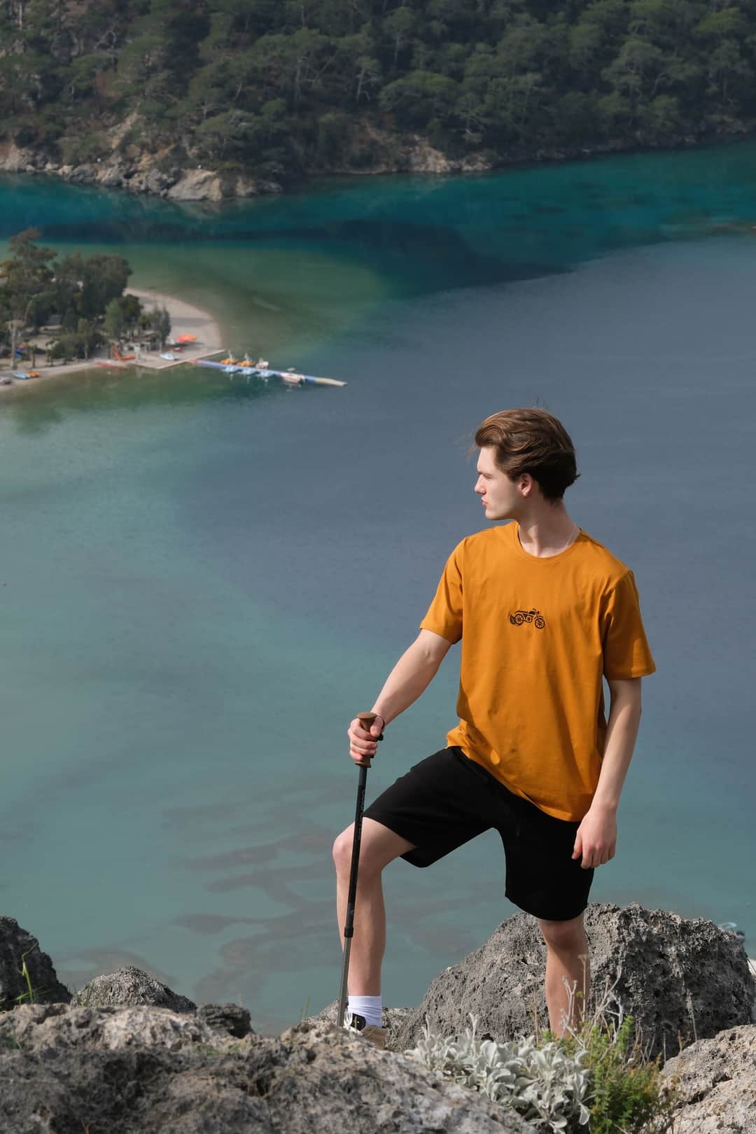 Bisiklet Yakalı Regular Hardal Uzun Kollu Erkek Tişört
