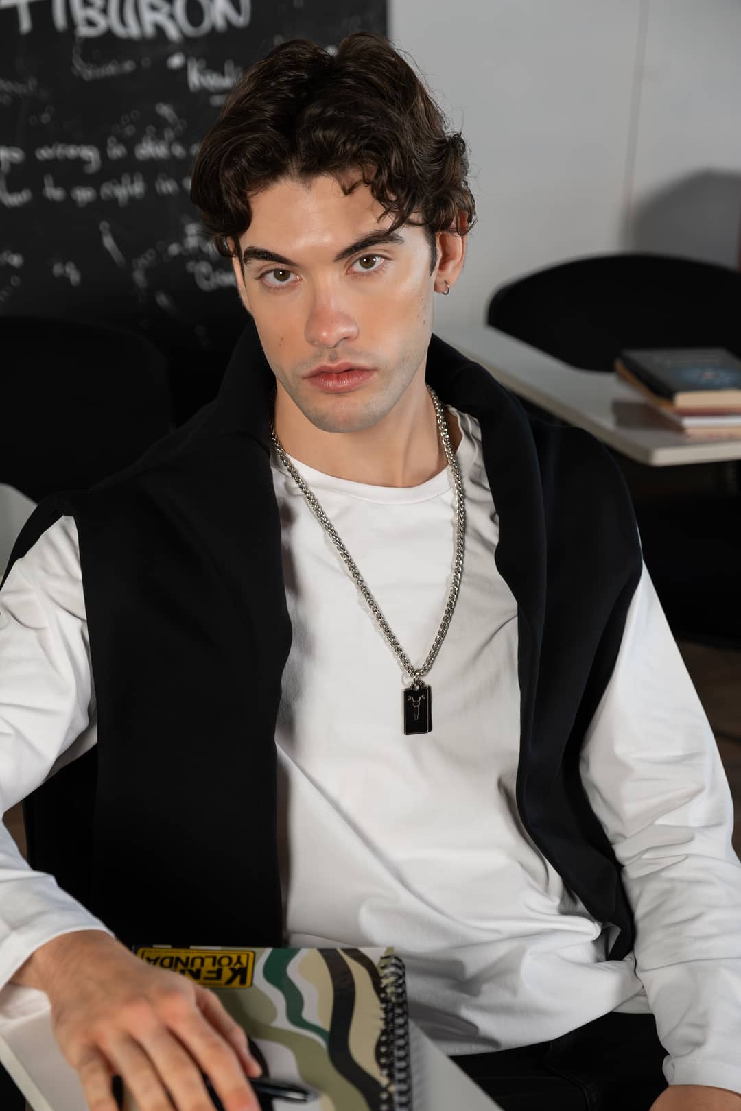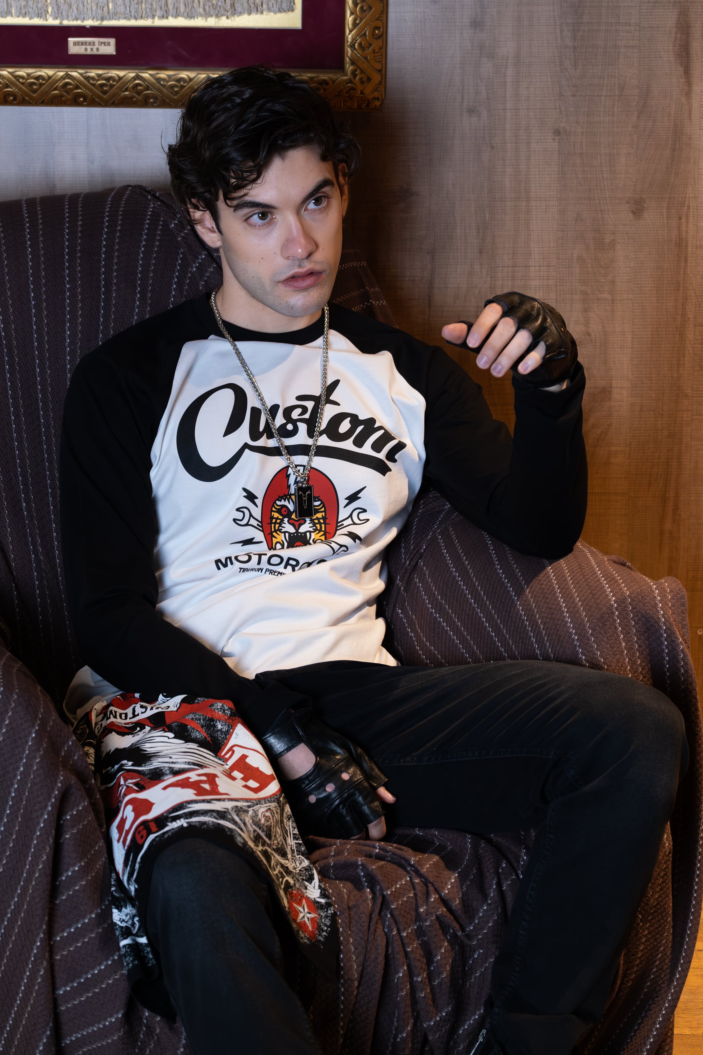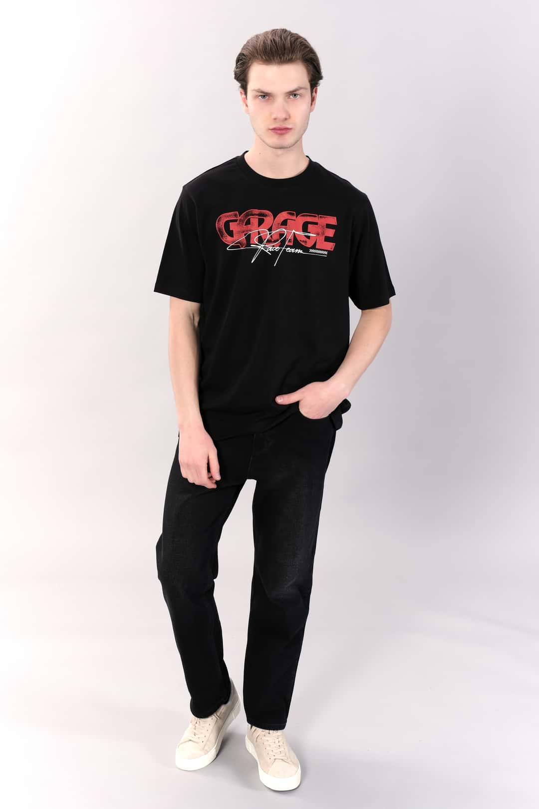 Erkek Siyah Renk Bloklu Baskılı Uzun Kollu Tişört