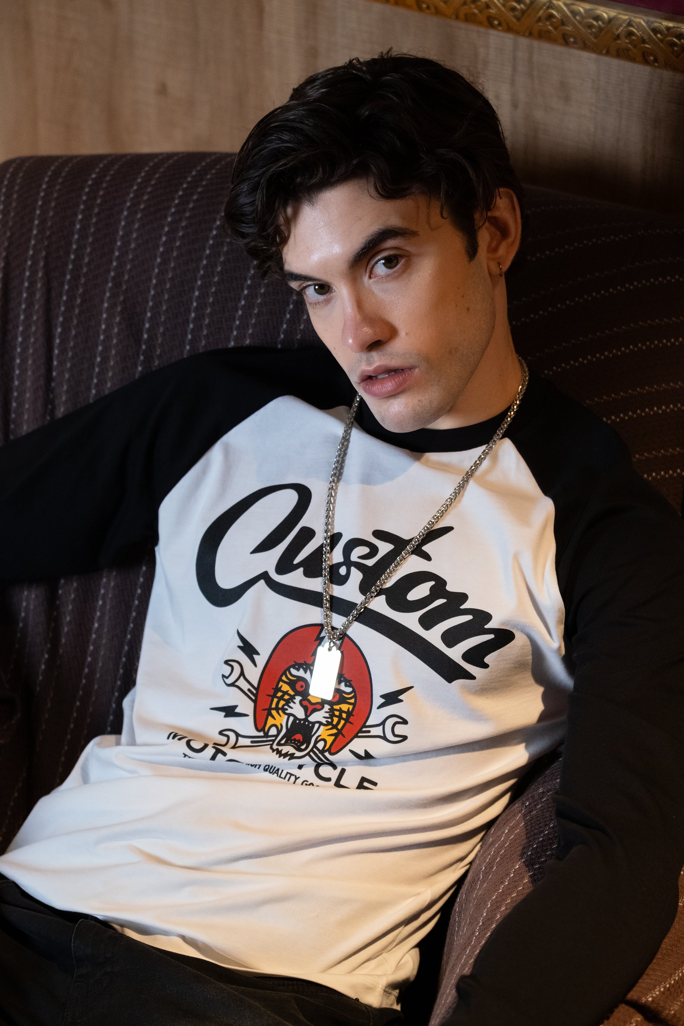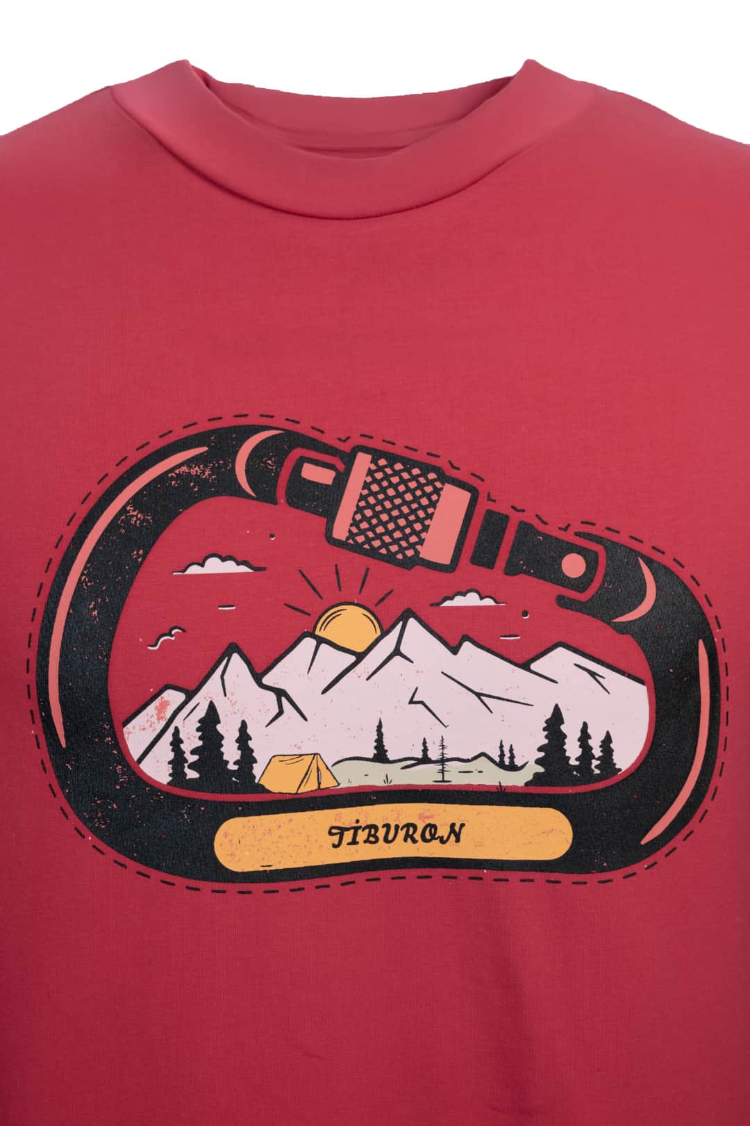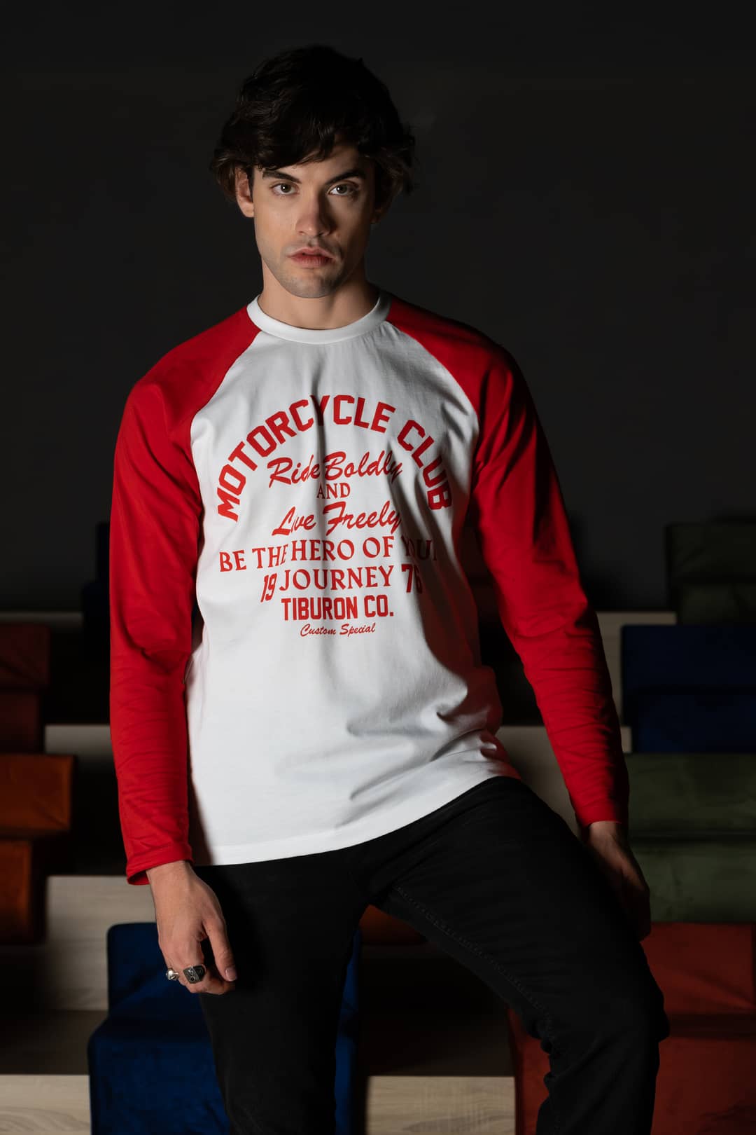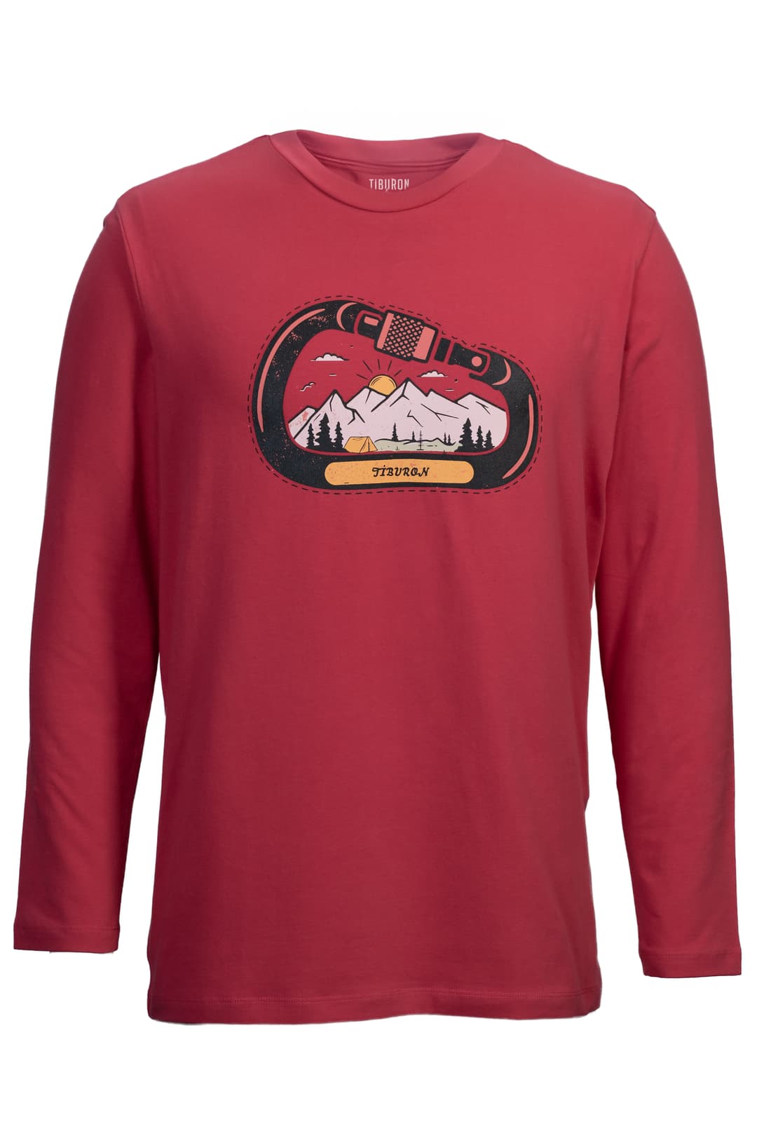 Erkek Kırmızı Renk Bloklu Baskılı Uzun Kollu Tişört