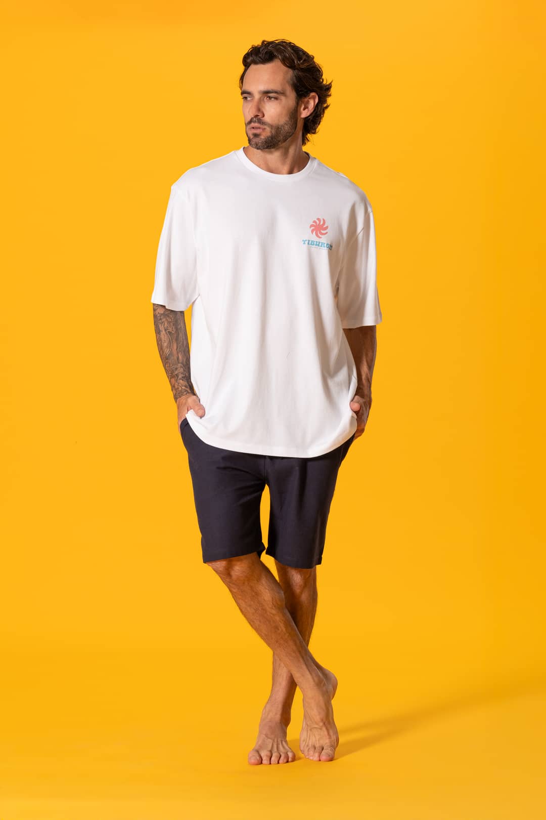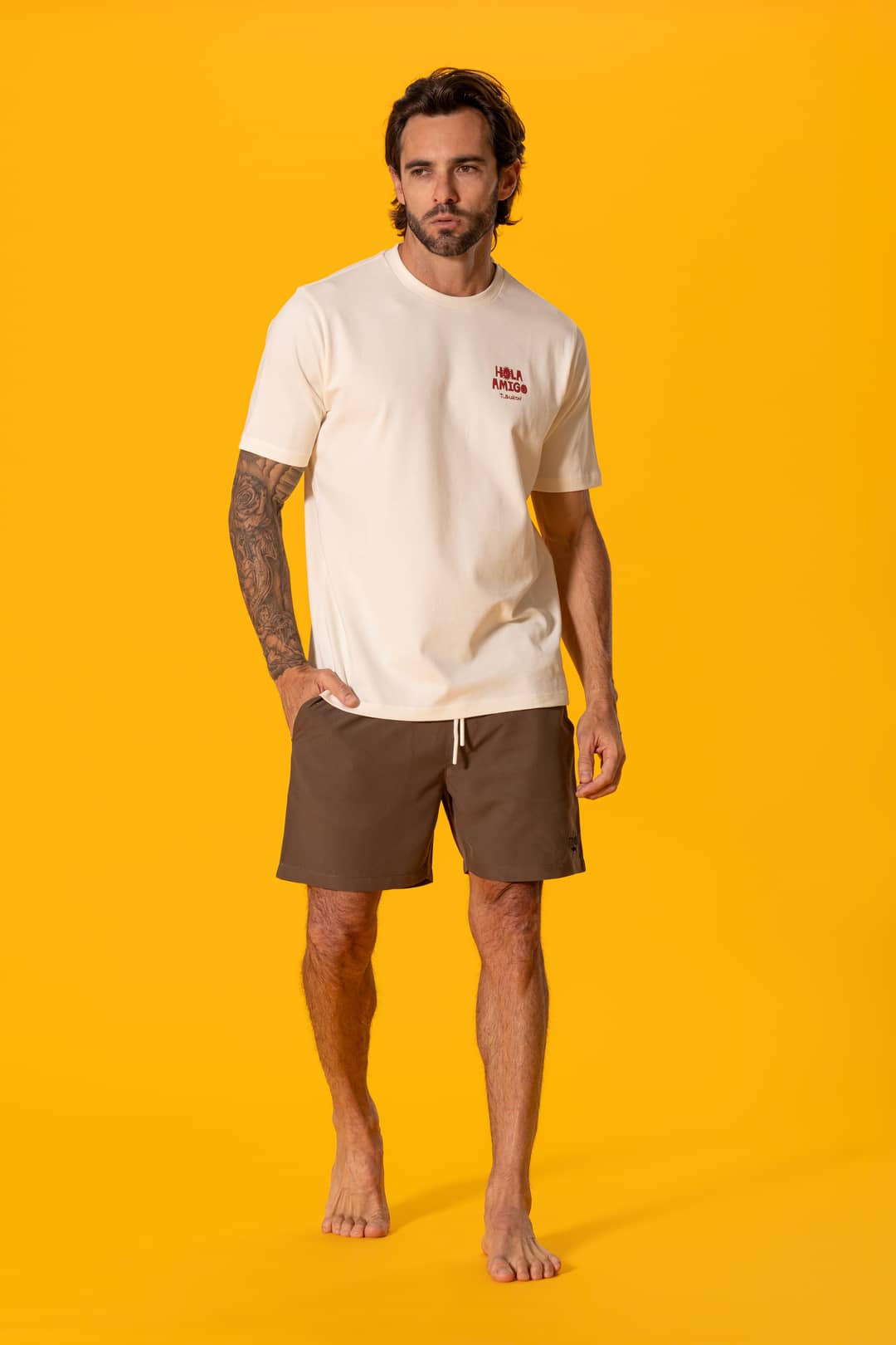 Erkek Tema Baskılı Ekru Regular Kısa Kollu Tişört