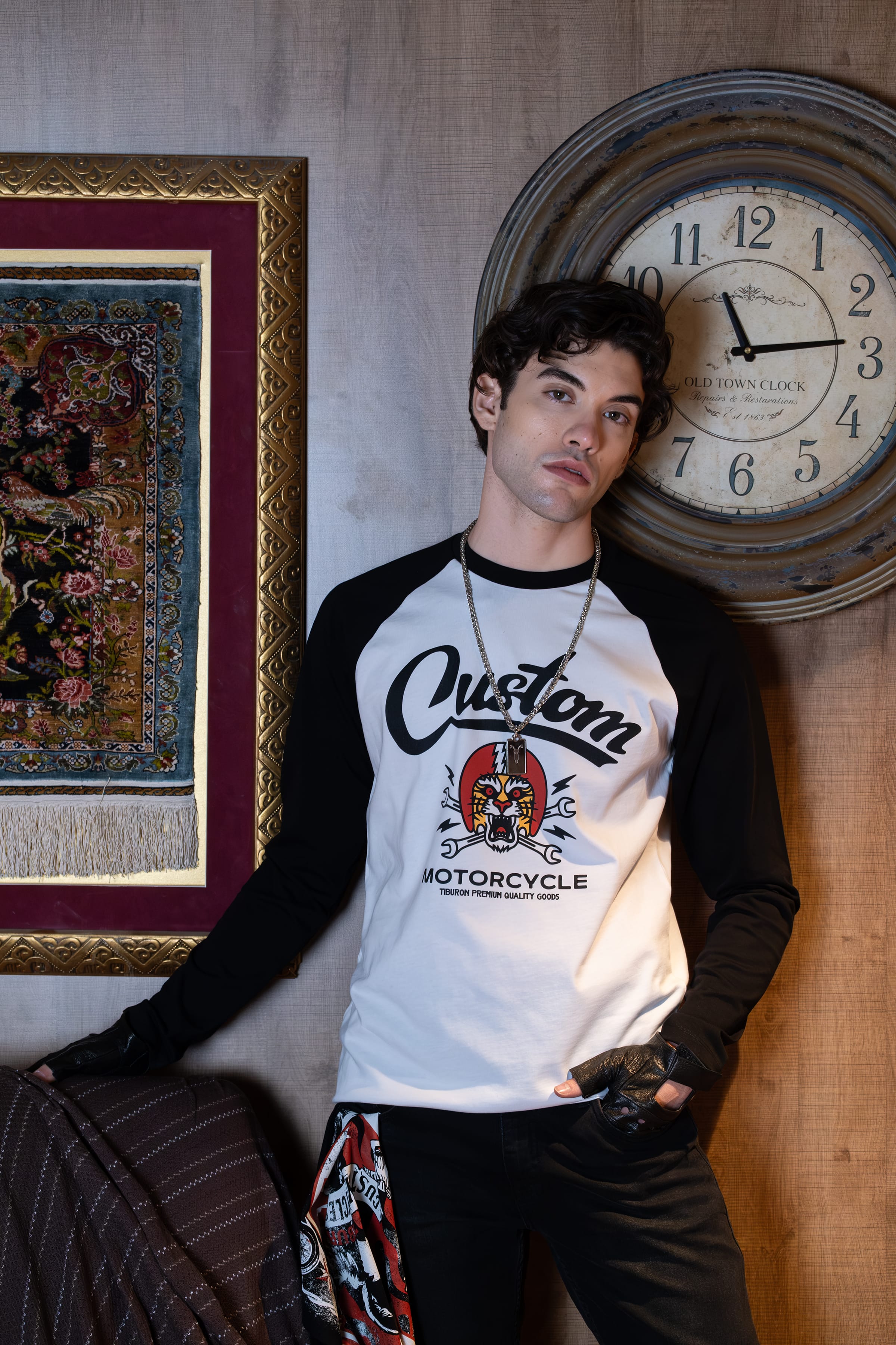 Büyük Motor Baskılı Beyaz Regular Tişört